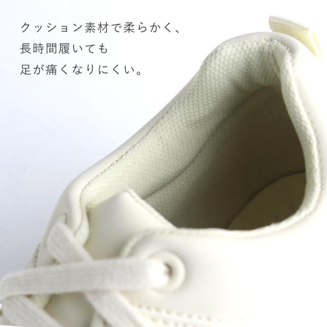 クッションインソールと柔らか素材の履き口が、歩行時の負担を軽減します。