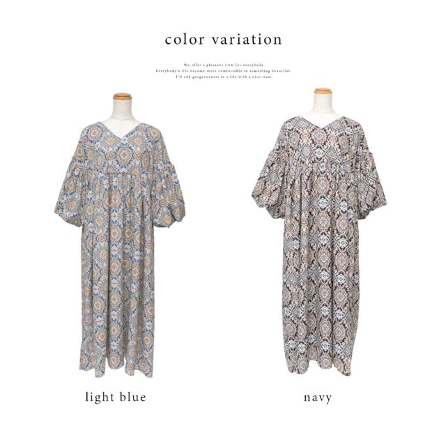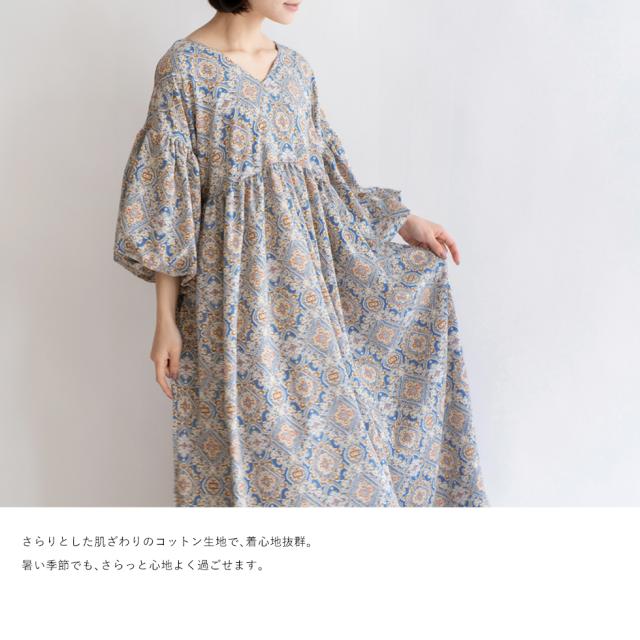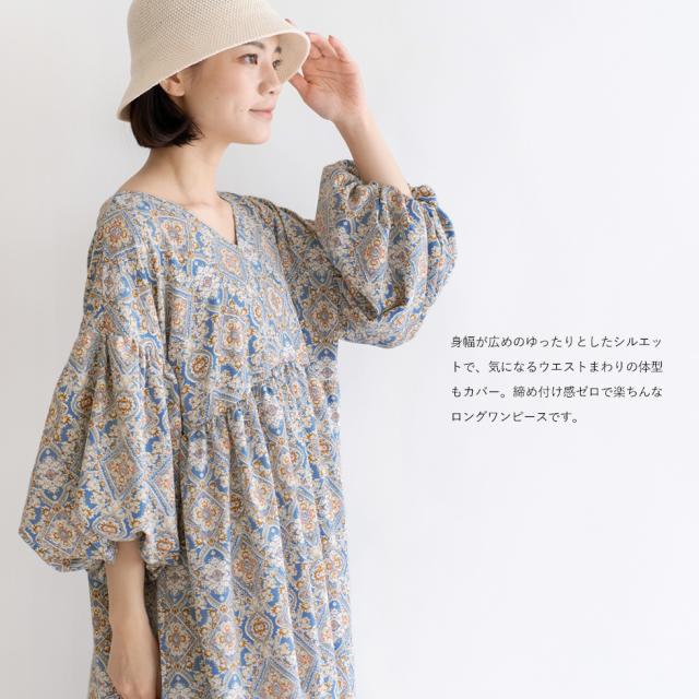 ワンピース レディース 長袖 ペイズリー エスニック 総柄 ロング丈 マキシ丈 おしゃれ 大人可愛い ボリューム袖 ドロップショルダー ロングワンピ ビッグシルエット オーバーサイズ 体型カバー 楽ちん リラックス ゆったり コットン 綿 vkkc-0053 送料無料新生活