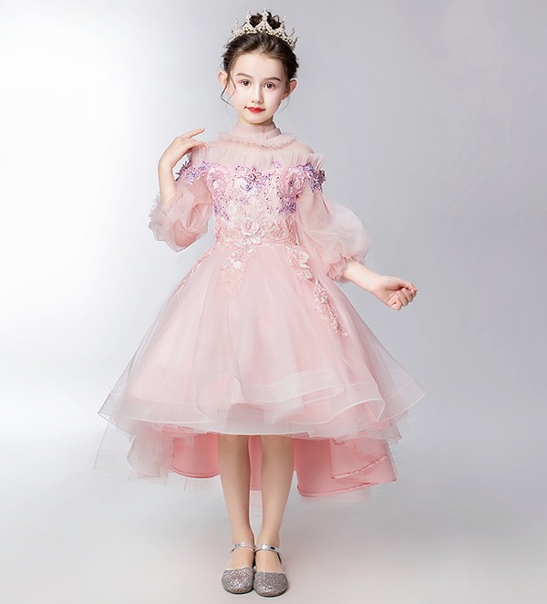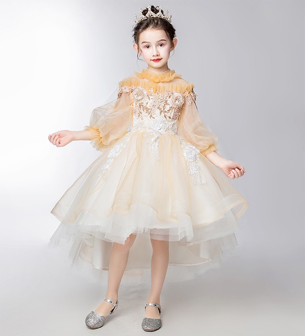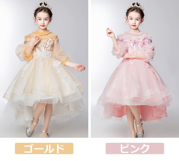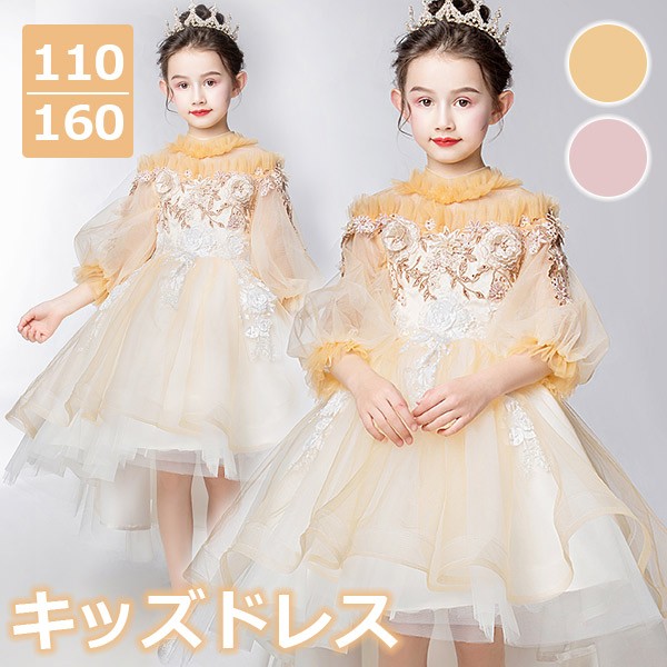 【レビュー投稿で+5%還元】キッズドレス フィッシュテール ボリューム袖 ドレス ファスナータイプ 袖あり パフスリーブ パフ袖 五分袖 膝丈 ピアノ 発表会 子供ドレス パーティードレス カラードレス ワンピース ゴージャス 結婚式 110 120 130 140 150 160