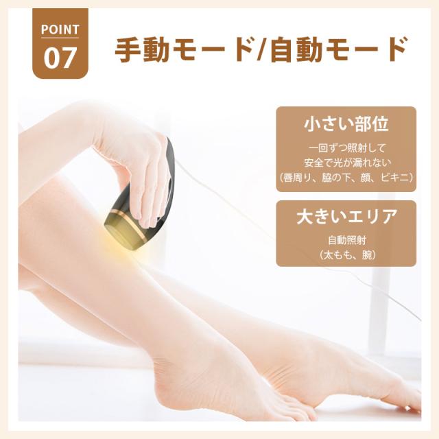 自動連射モードと手動モード二つモードがあります。スマートな自動認知センサーが搭載されるので発光口が自分の皮膚と十分に接触しているかどうかを判断でき、使用の安全性を確保しています。初心者にも気楽使えます。