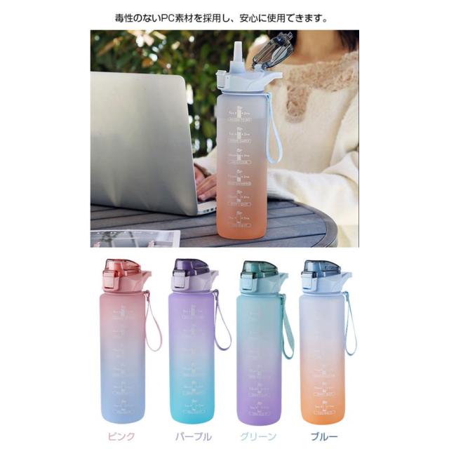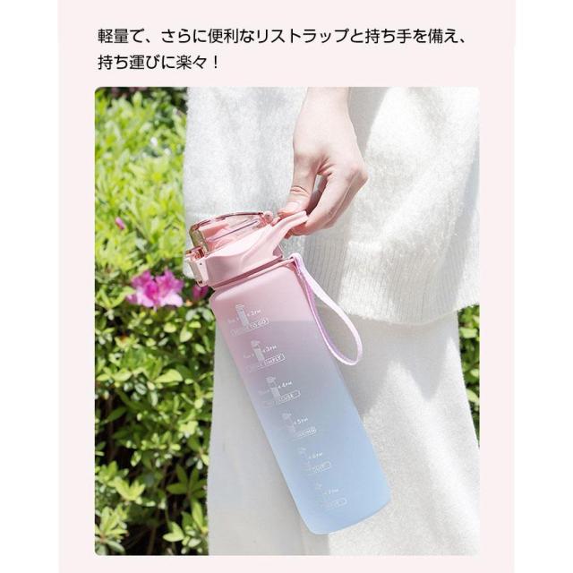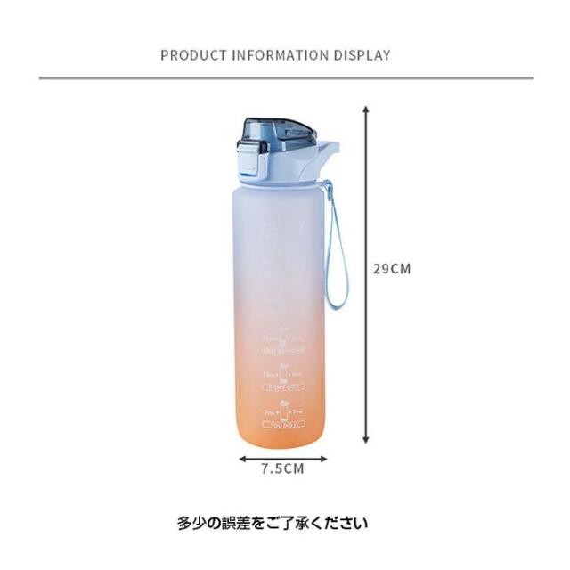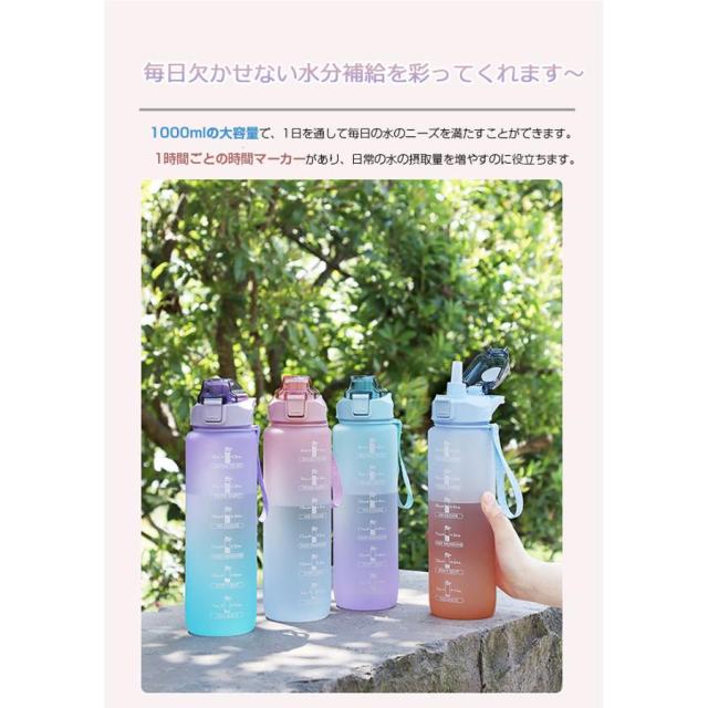 スポーツ 水筒 大容量 軽量 1リットル 目盛り付き 携帯水筒 キッズ 肩掛け 透明 大人 洗いやすい おしゃれ グラデーション ウォーターボトル 携帯便利 漏れ防止 子供 キッズ プラスチックスポーツボトル ヨガ フィットネス 用 ジム アウトドアボトル 1000ml