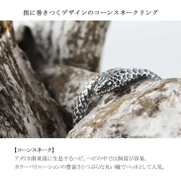 Cold I's コーンスネーク 巻きつき リング 1〜20号 シルバー925 指輪 ピンキーリング シルバーアクセサリー アカダイショウ ヘビ 蛇 スネーク