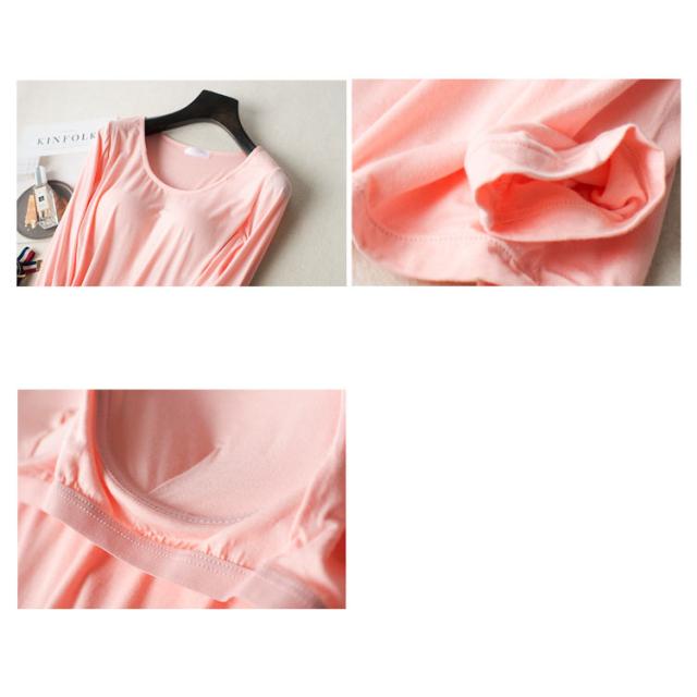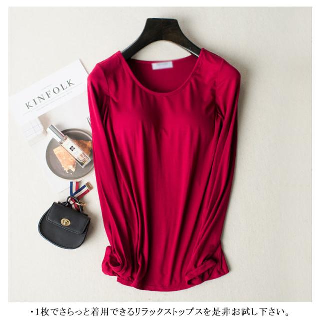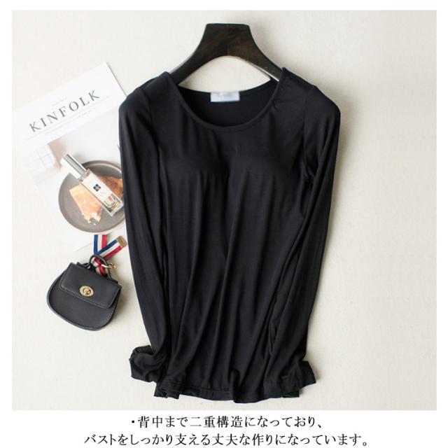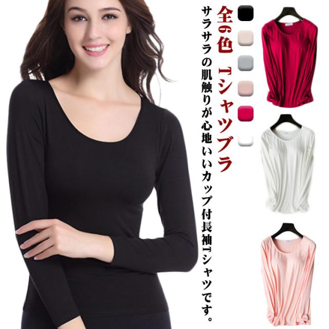 インナーシャツ 長袖Tシャツ レディース インナー 無地 ノンワイヤー カットソー トップス Tシャツブラ 肌着 ルームウェア ナイトウェア カップ付き