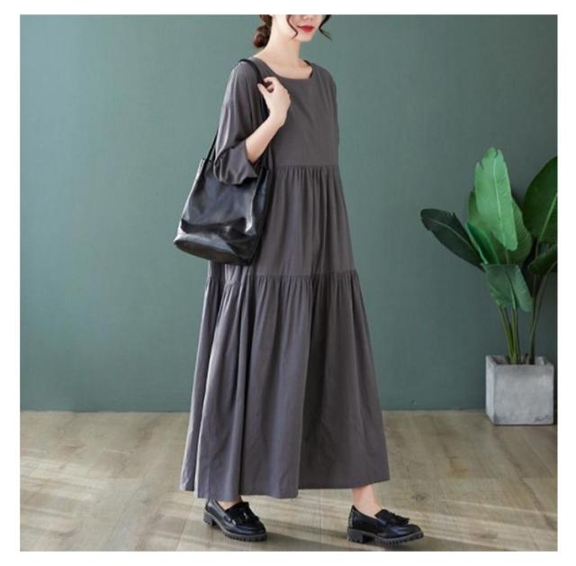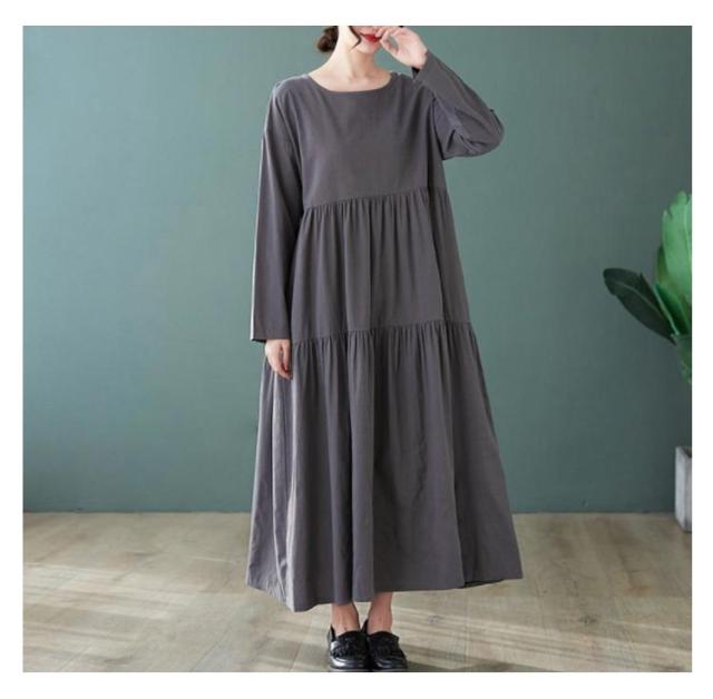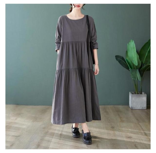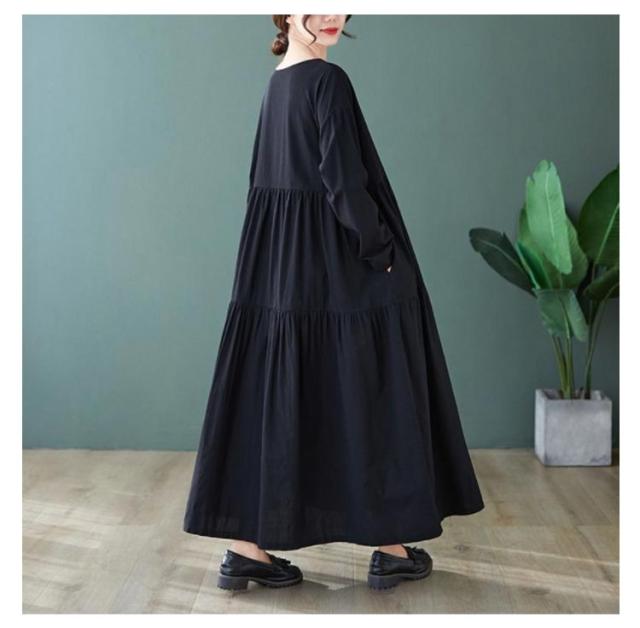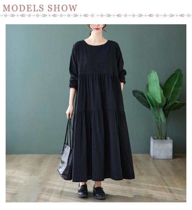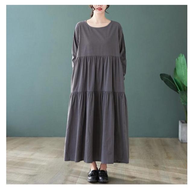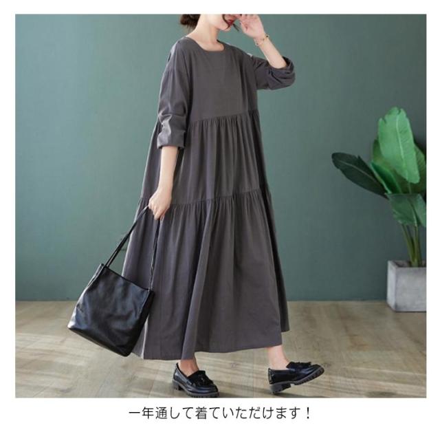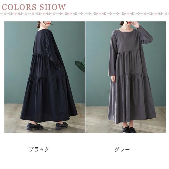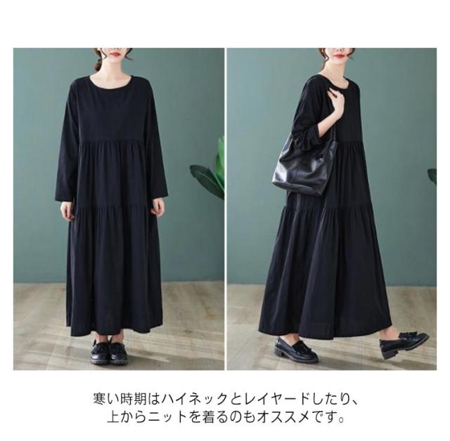 無地 長袖 ティアード ワンピース 着痩せ ワンピ レディース チュニック マキシ丈 送料無料 マキシ 体型カバー ゆったり ビッグシルエット オーバーサイズ ルームウェア Aライン フレアワンピース フレア 大きいサイズ ロングワンピース