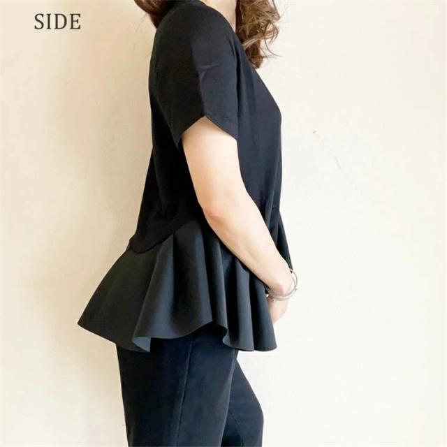 Tシャツ 裾フリル 半袖 ペプラム 無地 トップス 春 夏 レディース トップス 春夏新作 おすすめ おしゃれ ファッション カジ