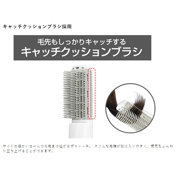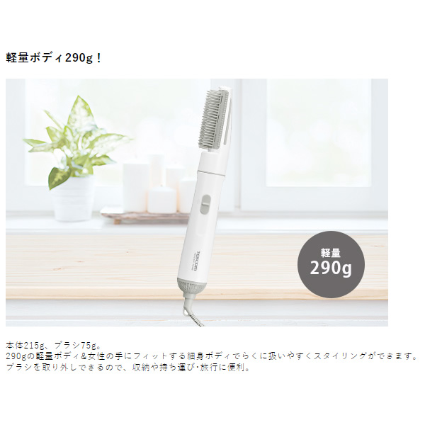 軽量ボディでらくらくスタイリング! ■温風温度(約):115℃(周囲温度30℃の場合・アタッチメントを取り外したときの温度) ■電源:AC100V(50/60Hz) ■消費電力:700W ■サイズ(約):幅20.9×奥行4.6×高さ4.8cm(本体のみ) ■質量(約):[本体のみ]215g [ブラシ付き]290g ■電源コード長さ(約):1.5m ■付属品:キャッチクッションブラシ ※記載は商品仕様の一部です。仕様説明不足等の理由での返品はできません。特に適合等は必ずご確認ください。