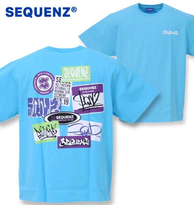 大きいサイズ SEQUENZ SQNZタグズ半袖Tシャツ アクア 3L 4L 5L 6L/1258-3284-3-59