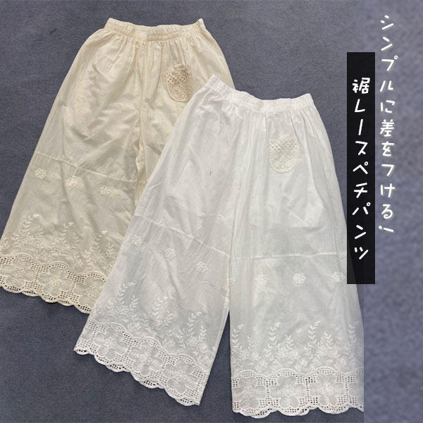 ■キーワード:ペチコートマキシ丈 裾レースパンツ ペチコートパンツ ぺチスカートスカート風 50代 40代 30代 20代 ボトムス パンツ ズボン ワイドパンツ ワイド フレアパンツ ロングパンツ ロング丈 長ズボン ペチ インナーパンツ 重ね着 レイヤード ゴムウエスト大きめ 部屋着 パジャマ 無地 ラクチン 体型カバー 着痩せ ゆったり シンプル ナチュラル 母の日