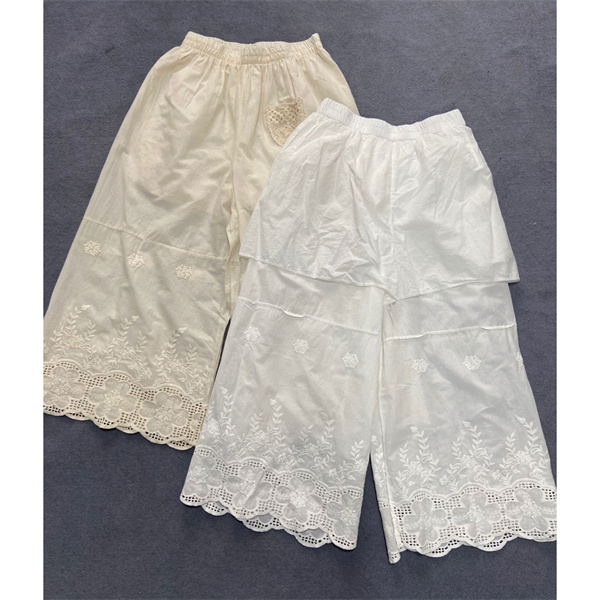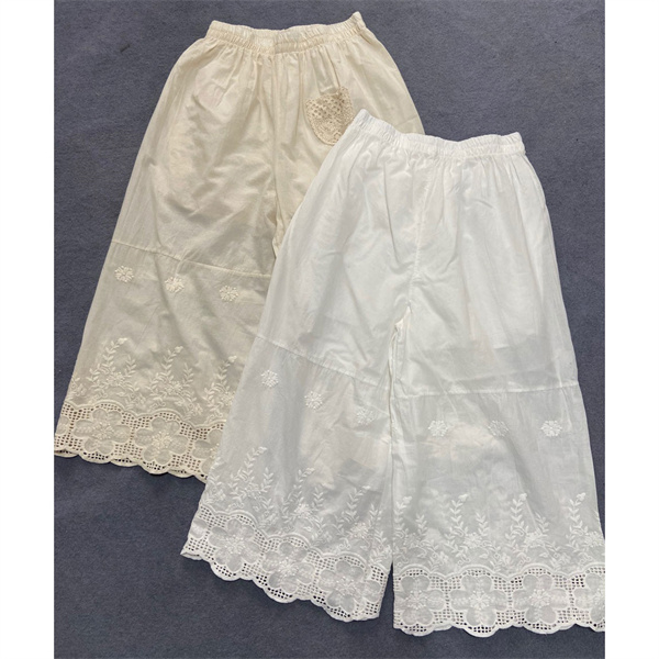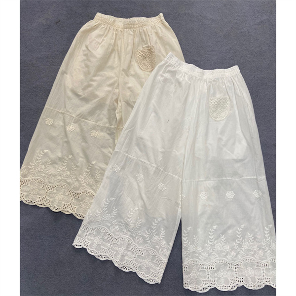 ペチパンツ ロング ペチコートコットン 綿麻 裾レース 透かし編み 長ズボン スカラップ 春夏 ナチュラル 体型カバー 30代 40代 ギフト