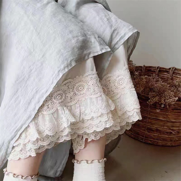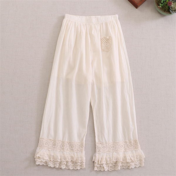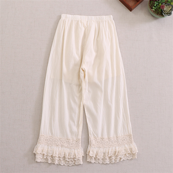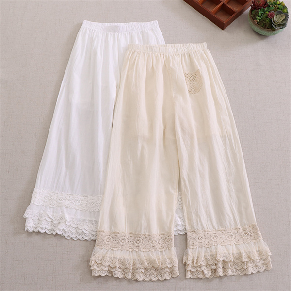 ポイント超超祭 ペチパンツ レディース ペチコート裾レース 綿麻 コットン パンツ インナー レイヤード 九分丈 重ね着 ボトムス ワイドパンツ ゆったり かわいい