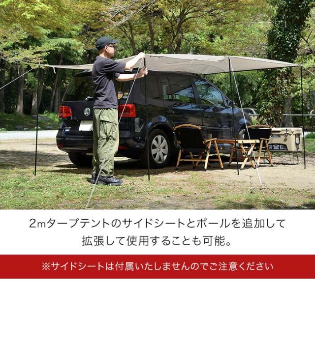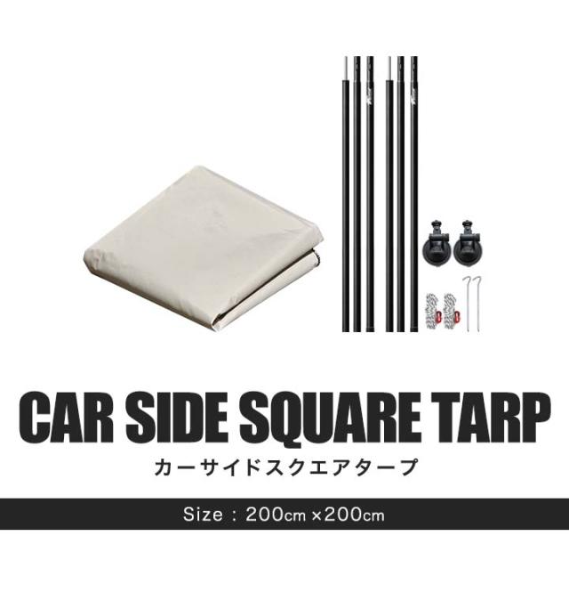 FIELDOOR カーサイドタープ 200×200cm 2m 車用 連結 タープ カーサイドオーニング ルーフテント 耐水 UVカット 日よけ オーニング 吸盤フック・テントポール・収納袋付き アウトドア オートキャンプ 車中泊 テント SUV 自動車 1年保証 送料無料