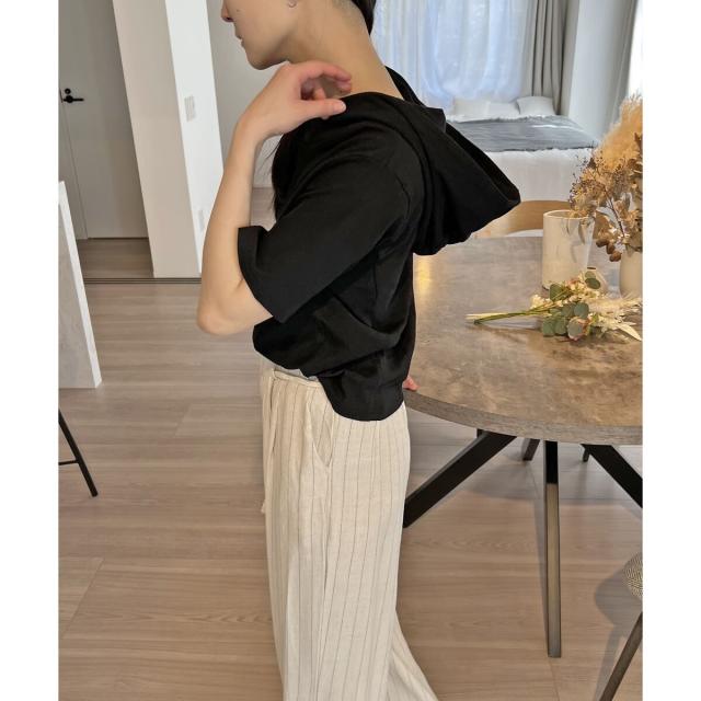 フードで後ろ姿も魅力的なコーディネートになります♪