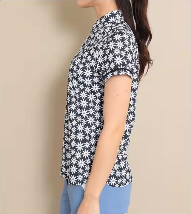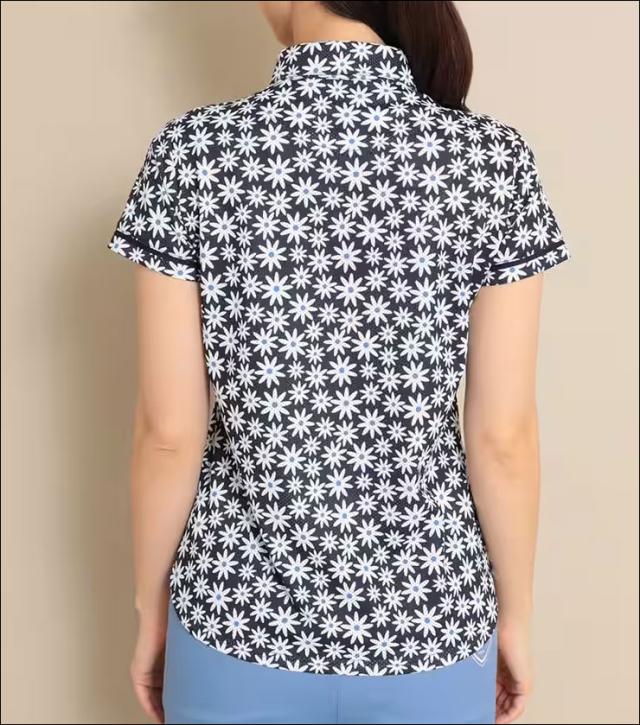 今シーズン一押し風穴がある素材「かざあなメッシュ」を使用したシャツは風通りが良く、体感温度が低く感じられる機能性があります。トレンドのレトロ感あるデイジーフラワーをプリントしました。柄をいかしたベーシックデザインのシャツです。