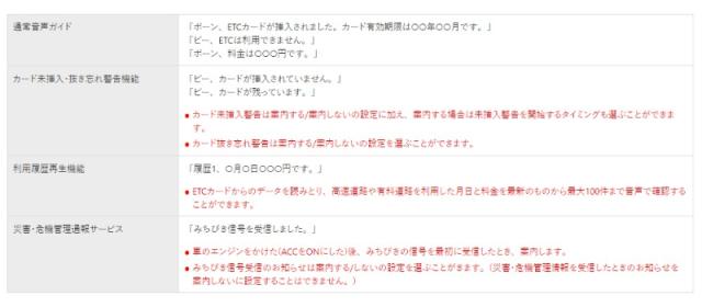 ETCカードからの情報を読みとり、高速道路や有料道路を利用した月日と料金を最新のものから最大100件まで音声で確認することができます。