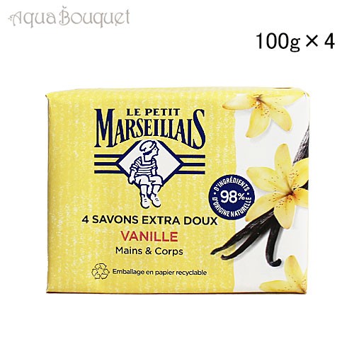 ル プティ マルセイユ ソープ バニラ 石鹸 4個X100g LE PETIT MARSEILLAIS 4 SAVONS EXTRA DOUX VANILLA MAINS&CORPS [3F-L4]