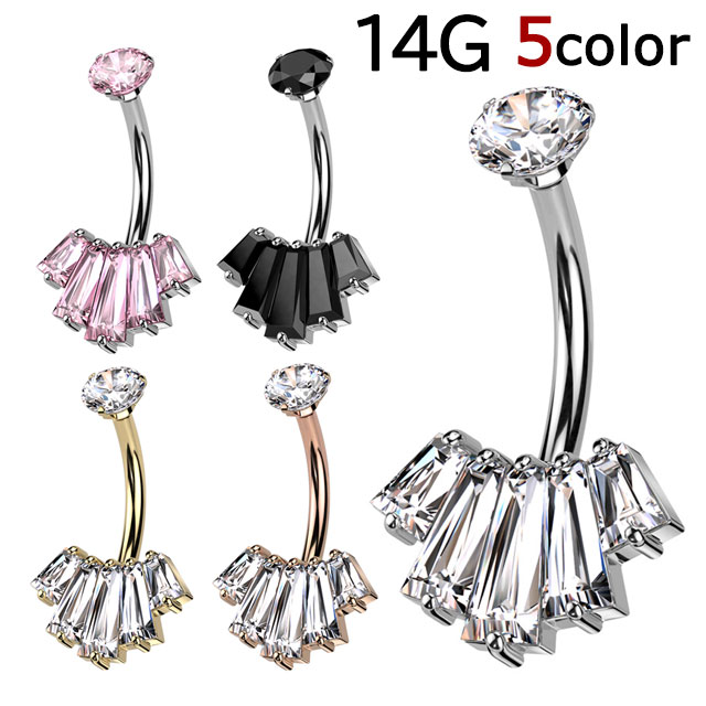 HSP 14G ラウンド スクエア CZ ジュエル ファン 扇 インターナル ネジ サージカルステンレス バナナバーベル ヘソピアス [ へそピアス ジュエリー ボディピアス ]
