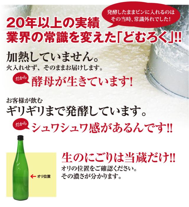 仕込み方法:本醸造(活性にごり酒) アルコール度:16% 日本酒度:-24 酸度:2.0 保存方法:要冷蔵 味わい(甘辛度):酸味のある甘口 飲み頃温度:キリっと冷やして 原材料名:米(国産)、米こうじ(国産米)、醸造アルコール