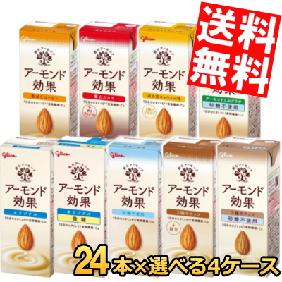 送料無料 グリコ乳業 アーモンド効果 200ml紙パック 選べる96本セット(24本×4ケース) アーモンドミルク 砂糖不使用 コーヒー 3種のナッツ