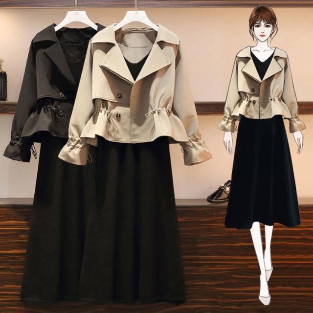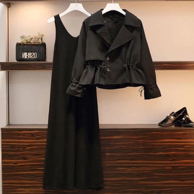 ワンピース セットアップ ジャケット ショート丈 ロング丈 袖あり 長袖 襟付き ストレート Iライン 2点セット かわいい 大人可愛い きれいめ カジュアル 大人 上品 おしゃれ 大人女子 こなれ感 ラフ 無地 春 秋 10代 20代 30代 レディース 女性用 OL 通勤 学生 通学 デート お出かけ 女子会 休日 旅行 着回し 普段使い ファッション コーデ プレゼント インスタ映え サイズ M L XL 2XL 3XL 4XL 5XL 大きいサイズ ぽっちゃり 色展開 ブラック カーキ