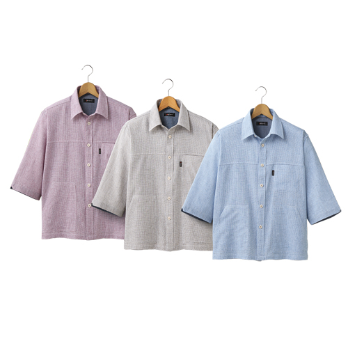 サラッと爽やかな肌触りの麻混の生地を採用。Tシャツの上からボタンを開けて羽織るだけで、コーディネ