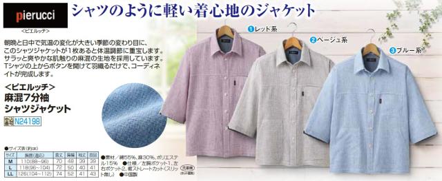 麻混 7分袖 シャツジャケット 全3色 ジャケット カジュアルシャツ メンズ 紳士服 シニア 男性 レッド ベージュ ブルー アウター 上着 シンプル 春アウター ライトアウター 重ね着 40代 50代 60代 70代 80代 父の日 お父さん