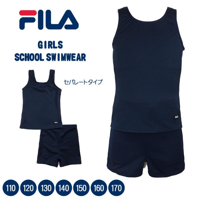 【メール便送料無料】FILA キッズ・ジュニア女児用セパレートスクール水着 110 120 130 140 150 160 170 125-677 ネイビー No.sw3263