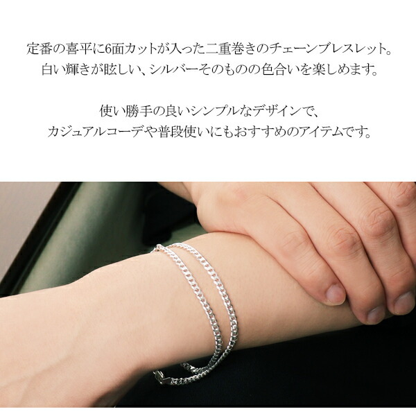 シルバー 6面カット きへいチェーン 二重巻き ブレスレット 幅約3.4mm 20cm 喜平 喜平チェーン シンプル きれいめ シルバーアクセサリー メンズ