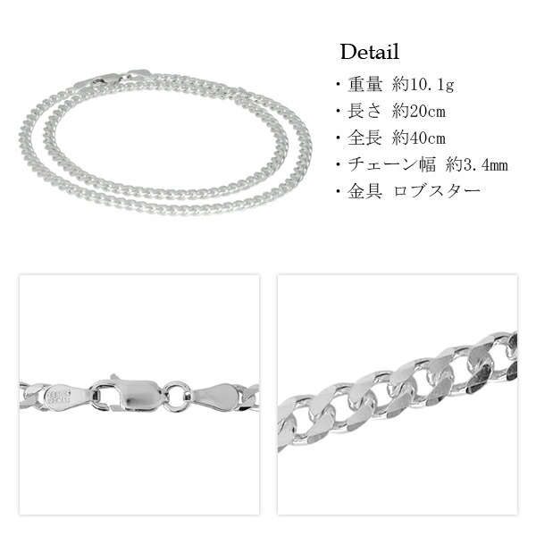 シルバー 6面カット きへいチェーン 二重巻き ブレスレット 幅約3.4mm 20cm