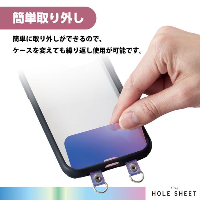 ■スマートフォンとケースの間に挟むだけでストラップホールを追加できる、2口タイプのストラップホールシートです。