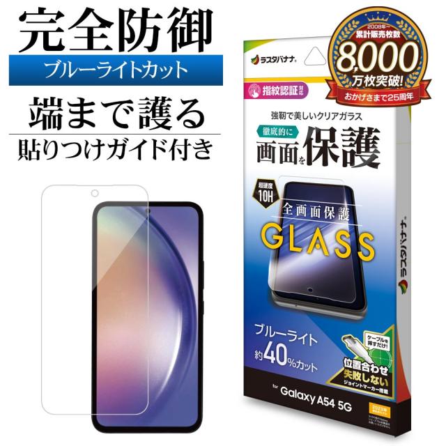 【送料無料】Galaxy A54 5G SCG21 SC-53D ガラスフィルム 全面保護 ブルーライトカット 高光沢 高透明 クリア 0.33mm 硬度10H 指紋認証対応 貼り付けガイド ギャラクシー a54 5g 保護フィルム GE3822GA54 ラスタバナナ