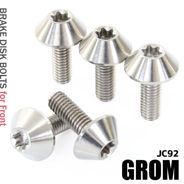 チタンボルト ホンダ グロム JC92専用 ブレーキディスクボルト フロント用 5本セット M6×17 P1.00 シルバー 銀色 軽量化 カスタム ネジ