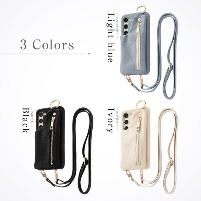 Galaxy S23 ケース ギャラクシーS23 ショルダーストラップ ポーチ ポケット レザー GalaxyS23 SC-51D SCG19 カバー スマホケース ブラック アイボリー ホワイト ブルー 白 黒 韓国 ギャラクシー 耐衝撃 かわいい おしゃれ