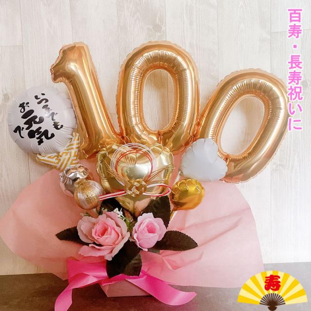 百寿祝い バルーンギフト 百寿 100歳 誕生日 バルーンアレンジ 百一賀 バルーン おしゃれ 豪華 電報 発表会 長寿 卓上 お祝い 敬老の日 数字 プレゼント 男性 女性 ピンク バルーンフラワー