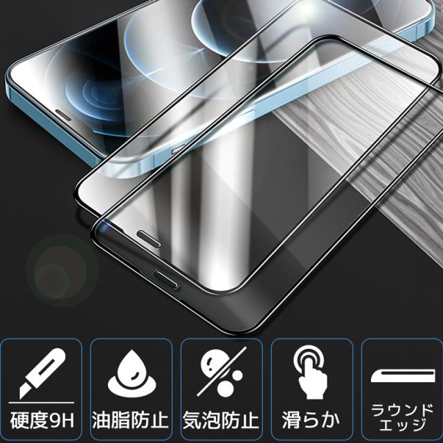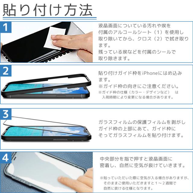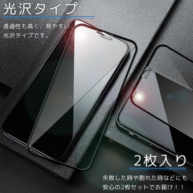 iPhoneガラスフィルム【2枚セット】貼付けガイド枠付き 強化ガラス 液晶保護フィルム 硬度9H 光沢 縁付き 2枚入り