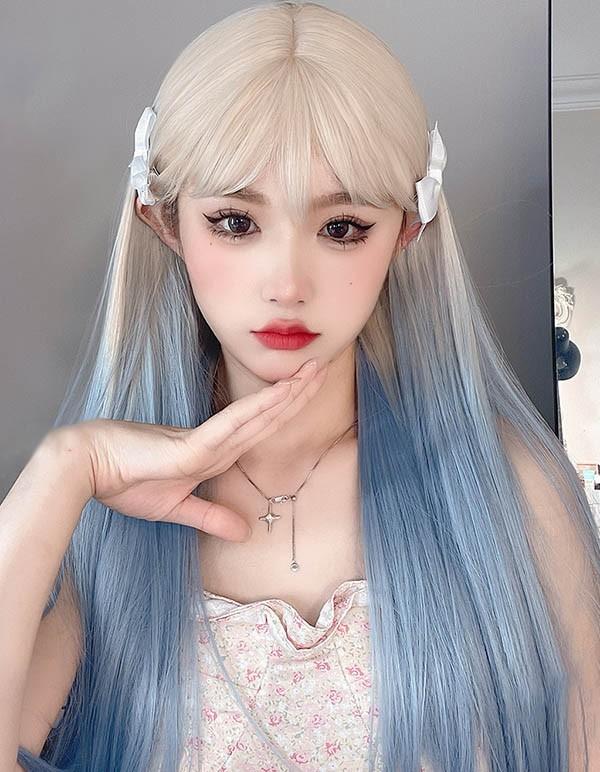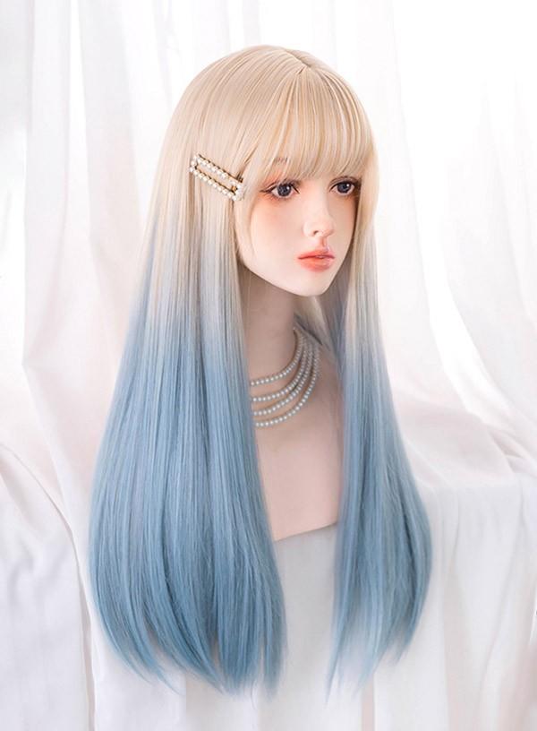ロングウィッグ グラデーションウィッグ レディース 小顔 かつら フルウィッグ ブルー ウィッグ ロング ストレート ぱっつん前髪 ロリータ 前髪あり ハロウィン 原宿風 韓国風 コスプレ 可愛い コスチューム 仮装 大人用 普段使い 文化祭 イベント 学園祭 演劇 舞台 学芸会 dq022n1n1zr
