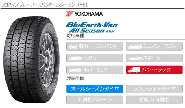 145/80-12 1458012 12インチ als1092yhry61 BluEarth-Van All Season RY61 YOKOHAMA ハイエース キャラバン Blue Earth オールウェザータイヤ 全天候 雪道 タイヤ一番 タイヤサイズ 溝 タイヤ交換 タイヤこうかん タイヤくみかえ 組み換え タイヤ取付対象 タイヤ取付可能 タイヤ交換可能 E5551 allseasontire tiret2p