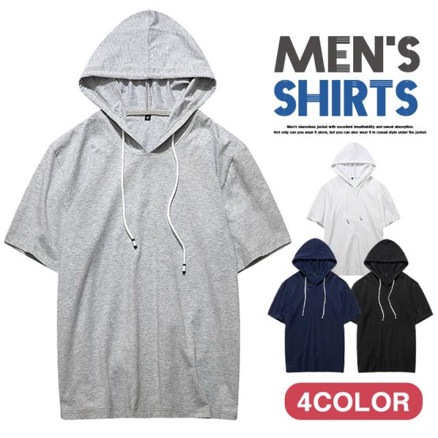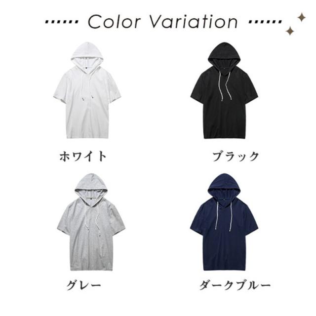 パーカー メンズ 半袖 フード付き Tシャツ レイヤード プルオーバー 半袖パーカー 夏服 ゆったり 大きいサイズ ストリート系