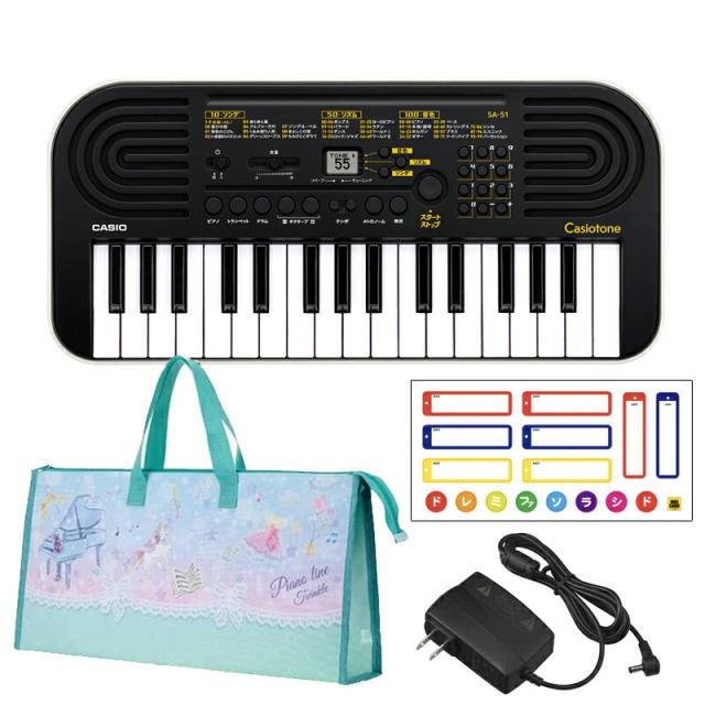 CASIO ミニ鍵盤 キーボード SA-51 (ブラック) 【専用ACアダプター、ドレミシール、持ち運びに便利なバッグ(トゥインクル) セット】 カシオ