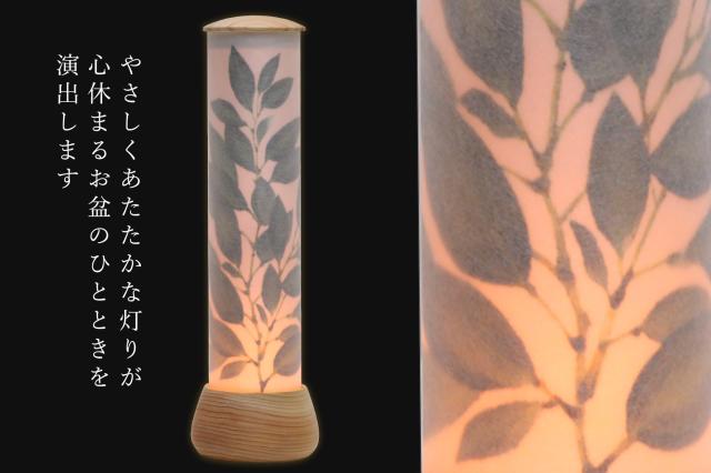 和紙調に描かれた日本画のような「常緑榊」を火袋(ひぶくろ)に。あたたかな灯明が、しっとりとゆったりと、故人を想うお盆のひと時を演出します。