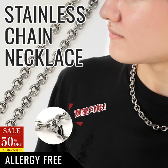 半額 ステンレス ネックレス メンズ チェーン 50cm 金属アレルギー つけっぱなし ステンレス304 金属アレルギー対応 ゴールド シルバー 太め ホワイト ジュエリー アクセサリー アレルギーフリー シンプル 誕生日 クリスマス プレゼント ギフト アレルギー対応