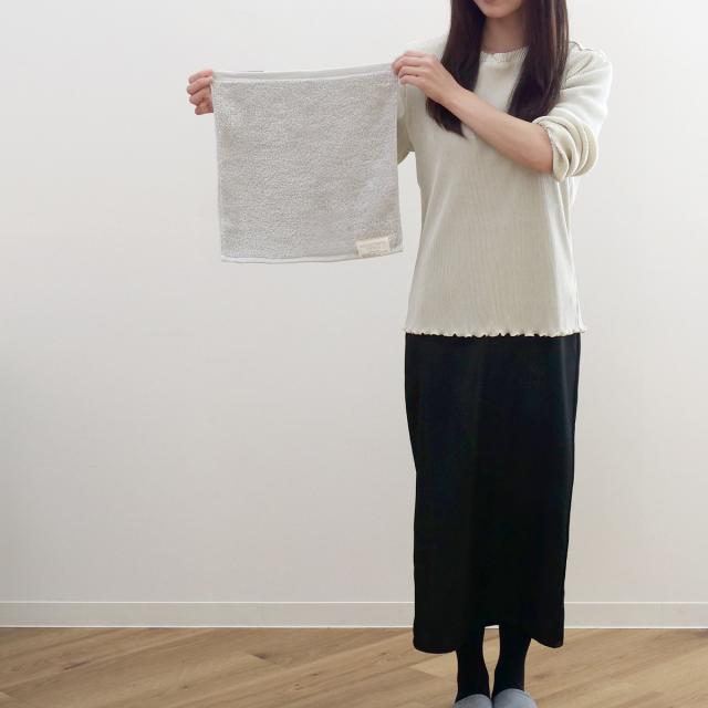 サイズは約 34×35cmと一般的なハンドタオルサイズです。手を拭くのに最適でコンパクトなサイズで持ち運ぶのにもぴったりです。