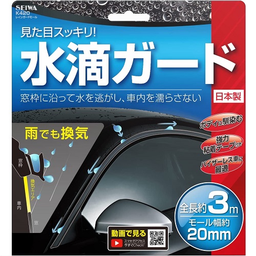 SEIWA / セイワ レインガードモール 雨除け 長さ3m K420 カー用品 水滴ガード 幅20mm 送料無料