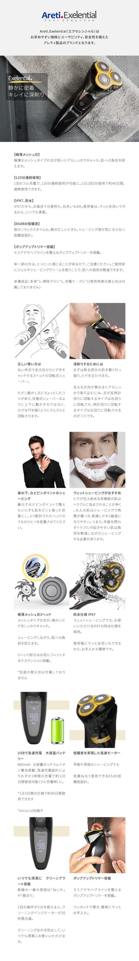 Exelential エクセレンシャル シェーバー ポータブル 電気シェーバー 回転式 充電式 USB充電 IPX7 防水 お風呂剃り可 トリマー モード メンズ fc5203-1C 電動シェーバー 髭剃り