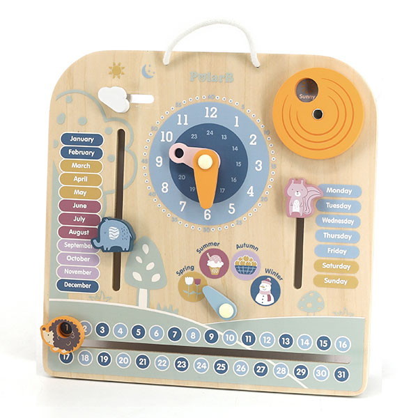 ★ カレンダーと時計の勉強ができるキュートな学習ボード!週、月、日付、季節、時間、天気を学べます。英語表記なので小さいお子様からの英語の勉強にぴったり。時計の針は可動式なので動かして時間の勉強ができます。時間を伝える方法、そして想像力、細かい手先の運動も促します。キュートなデザインはお子様の興味を持ちやすいデザインです。