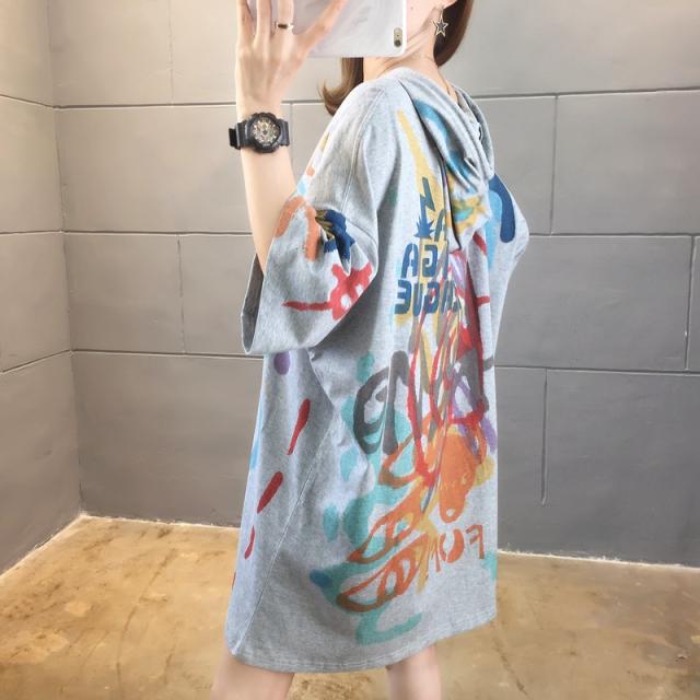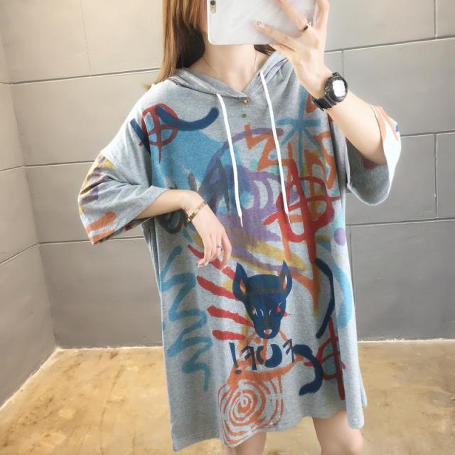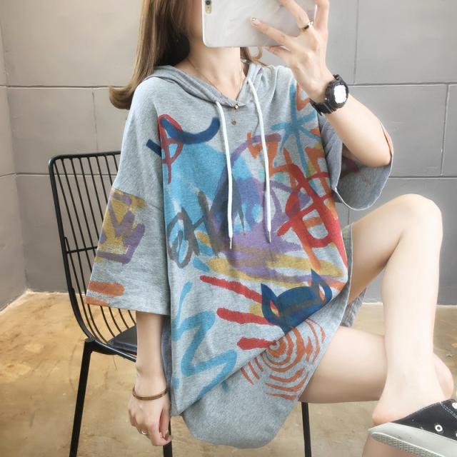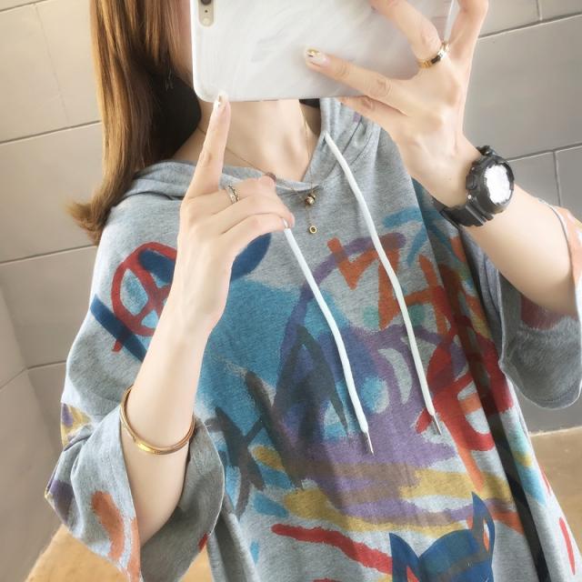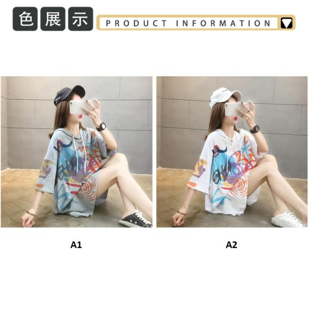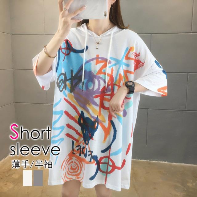 【キーワード】カットソー Tシャツ レディース トップス 半袖 配色 体型カバー フード付き パーカー ティーシャツ カジュアル 夏 柔らかい質感 ゆったり 大人 カジュアル