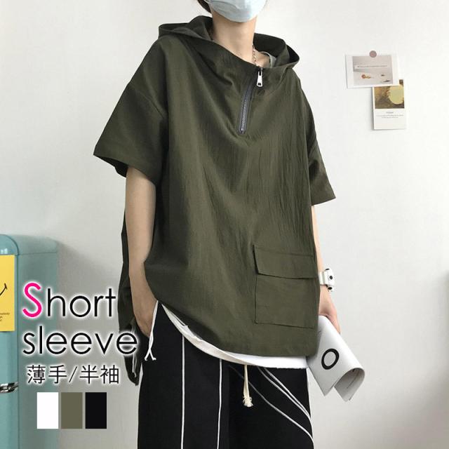 tシャツ レディース メンズ 夏 半袖 パーカー フード付き カットソー おしゃれ 薄地 ゆったり トップス アウター インナー