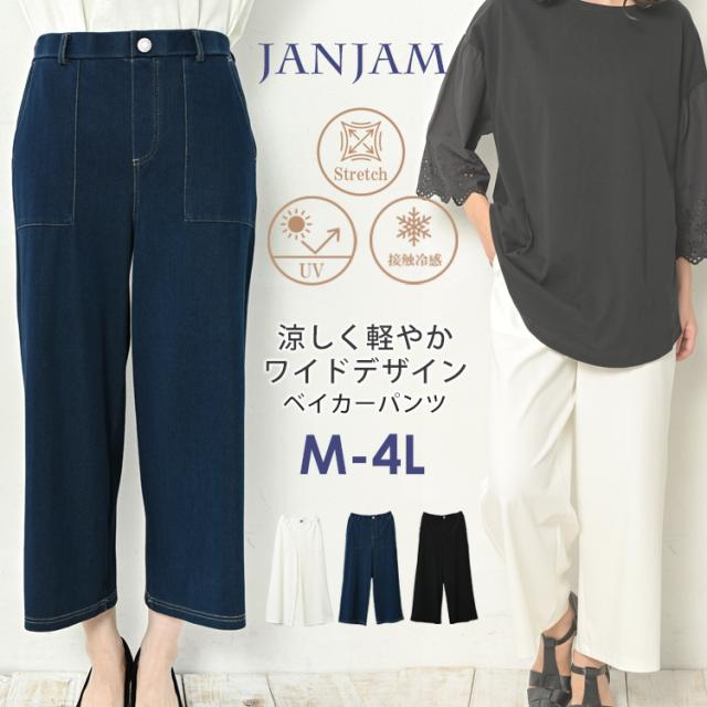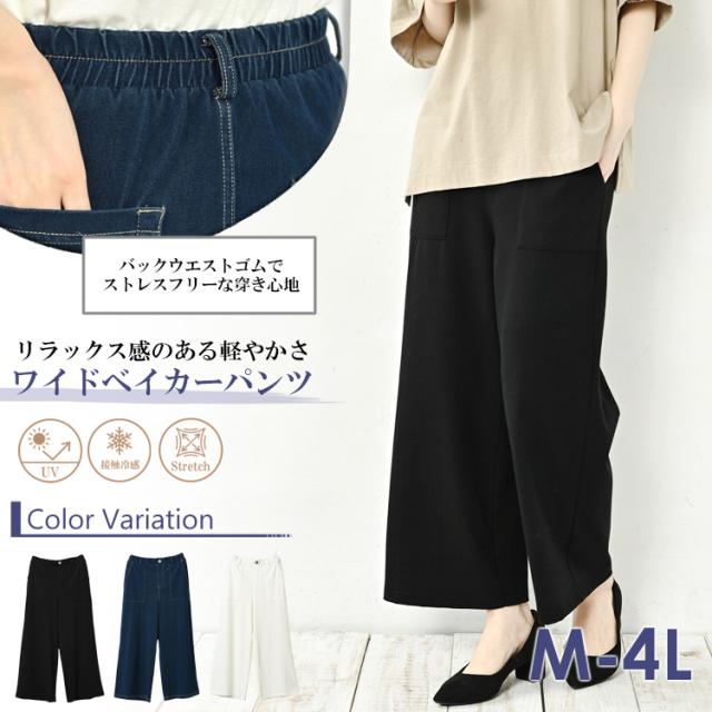 大きいサイズ レディース ベイカーパンツ ワイドパンツ ウエストゴム ロング丈 UVカット 接触冷感 ボトムス M/LL/3L/4L ゆったりサイズ ぽっちゃり女子 プラスサイズ