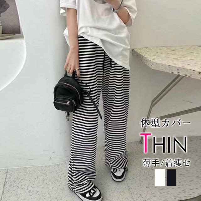 明日まで値下げ 春夏新作 ワイドパンツ レディース ロングパンツ 涼しい ストライプ 通気性 山登り ビーチ 海 おうち時間 母の