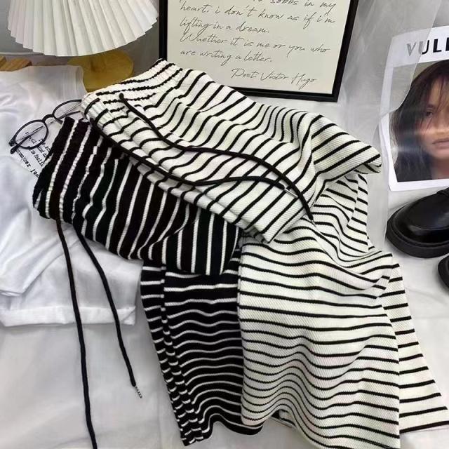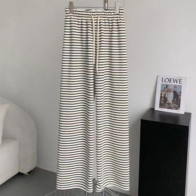 - ボーダーの薄手のパンツが欲しくて… 購入しました。 サラッとしていて、履き心地は良いです。が、部屋着の感覚です。 プライスも安かったので良かったです。