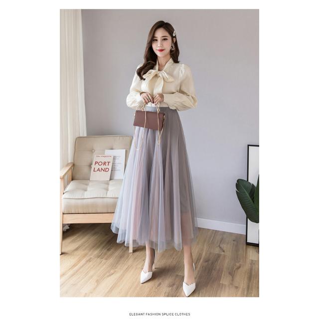 チュールスカート スカート マキシスカート ロングスカート 配色 フレアスカート ウエストゴム マキシスカート お花見 春夏 春秋 母の日